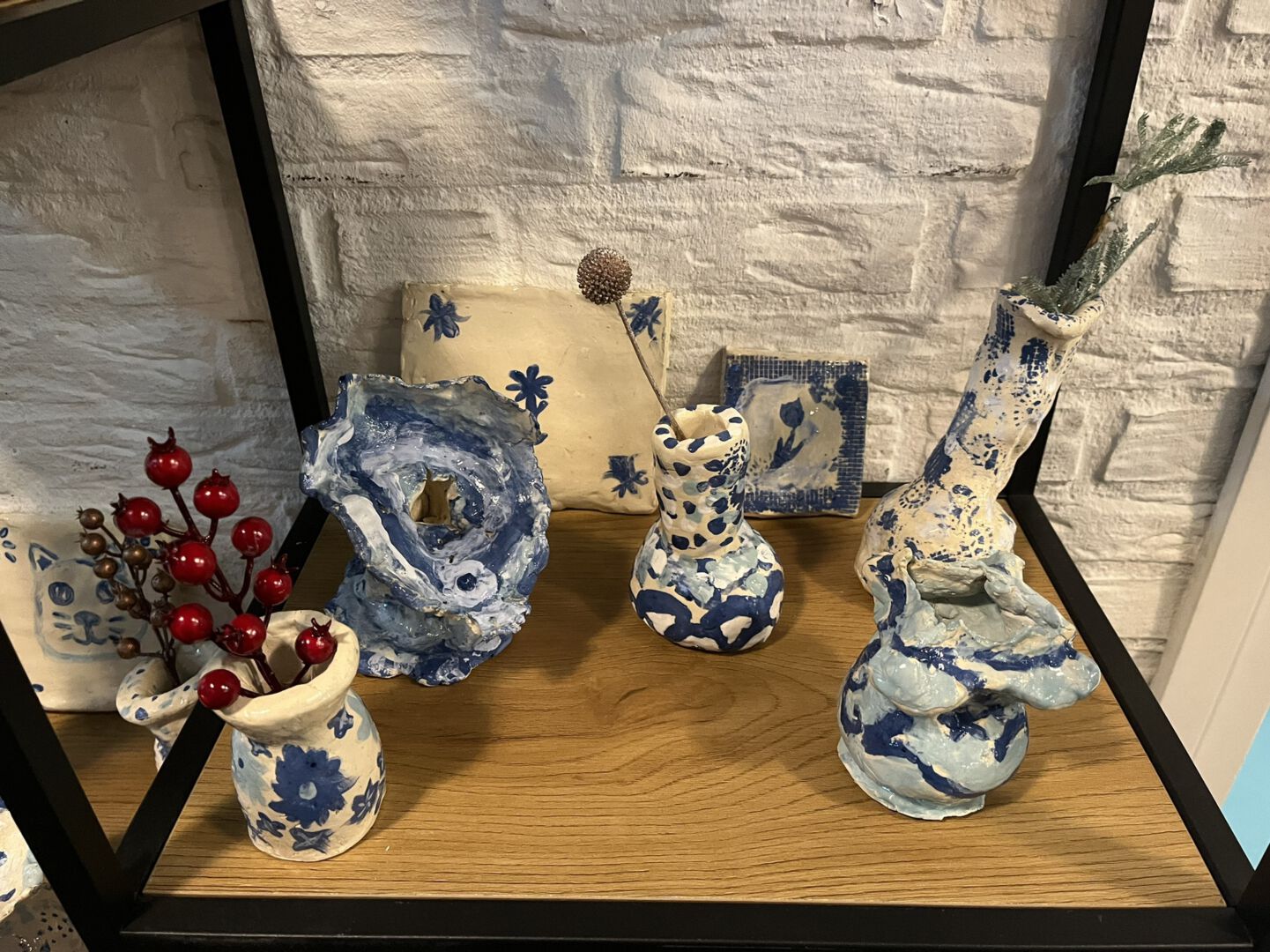 De kinderen hebben passend bij het thema 'Echt Nederland' fantastische Delfts blauwe vaasjes en tegeltjes gemaakt. Beeldend Kunstenares Jessica van Dierendonck werkt vanaf dit schooljaar elke donderdag en vrijdag met de kinderen in ons Kunstatelier. De kinderen genieten! En wij ook..