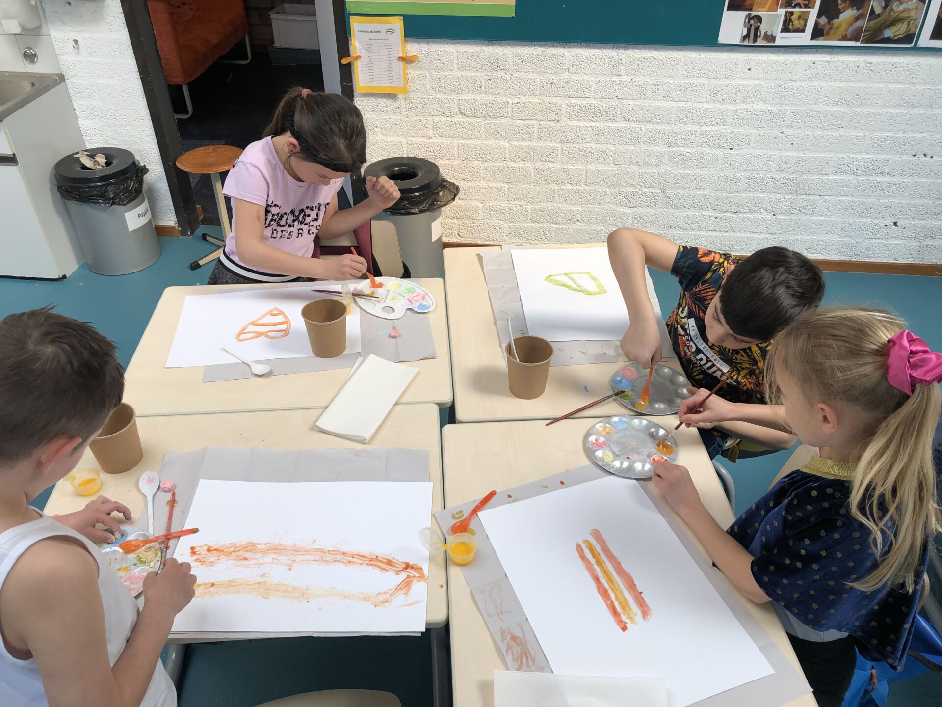 De #kinderkunstweek was een verrukkelijk feest! Taartjes van gips, je eigen verf mengen met natuurlijk producten en meer! Thema: 'Voedsel in de kunst'.